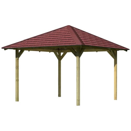 Das KARIBU Pavillon-Set »Cordoba« besticht durch eine sorgfältige Materialauswahl und eine Konstruktion, die sowohl Stabilität als auch eine ansprechende Optik gewährleistet. Das braune Finish fügt sich harmonisch in nahezu jede Gartenlandschaft ein und verleiht Ihrem Außenbereich eine warme und einladende Atmosphäre. Die Viereckform mit einer Seitenlänge von 357 cm bietet ausreichend Platz für Ihre Gartenmöbel, sodass Sie mühelos eine gemütliche Lounge-Ecke oder einen eleganten Essbereich im Freien schaffen können. Die Höhe von 200 cm ermöglicht eine angenehme Stehhöhe unter dem Pavillon.