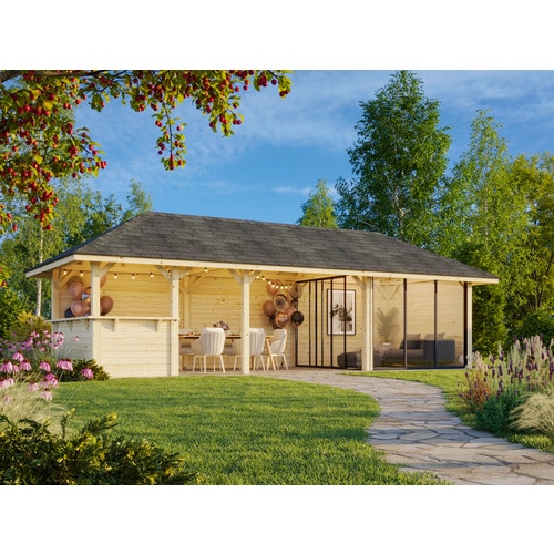 - Großzügiger Raum: Mit einer Grundfläche von 876 x 300 cm bietet der Pavillon viel Platz für Möbel, Gäste und Aktivitäten.