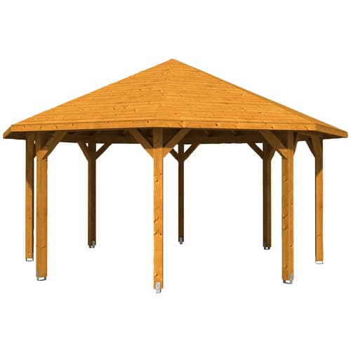 Der SKANHOLZ Pavillon »Nice 3« vereint ästhetisches Design mit praktischer Funktionalität und schafft so einen harmonischen Blickfang in jedem Garten. Das achteckige Grunddesign sorgt für eine offene und einladende Atmosphäre, während das namensgebende Zeltdach nicht nur optisch ansprechend ist, sondern auch effektiv vor Sonne und leichtem Regen schützt. Mit seinen großzügigen Abmessungen von 557 x 347 x 557 cm bietet der Pavillon reichlich Platz für diverse Outdoor-Möbel und ermöglicht es Ihnen, eine gemütliche Lounge-Ecke, einen Essbereich oder einen geschützten Spielbereich für Kinder einzurichten.