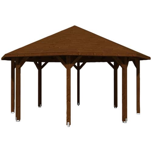 Der SKANHOLZ Pavillon »Nice 3« in brauner Ausführung mit seinem charakteristischen Zeltdach und der achteckigen Grundform ist die ideale Wahl für anspruchsvolle Gartenbesitzer, die Wert auf Ästhetik, Funktionalität und Langlebigkeit legen. Mit seinen großzügigen Maßen von 557 x 347 x 557 cm bietet er ausreichend Platz für gesellige Runden, entspannte Nachmittage im Freien oder als stilvoller Unterstand für Ihre Gartenmöbel. Dieser Pavillon vereint hochwertiges Material mit durchdachter Konstruktion und schafft eine einladende Atmosphäre auf Ihrem Grundstück.