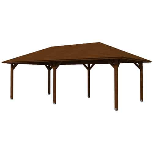 Das Herzstück des SKANHOLZ Pavillon »Orleans 2« bildet seine hochwertige Holzkonstruktion. SKANHOLZ steht für Expertise in der Holzverarbeitung, und dies spiegelt sich in der Auswahl und Behandlung des verwendeten Holzes wider. Das Holz wird sorgfältig ausgewählt und behandelt, um eine optimale Widerstandsfähigkeit gegen Feuchtigkeit, UV-Strahlung und Schädlingsbefall zu gewährleisten. Dies verlängert die Lebensdauer des Pavillons erheblich und minimiert den Pflegeaufwand. Die braune Farbgebung unterstreicht die natürliche Schönheit des Holzes und fügt sich nahtlos in die umgebende Natur ein, ohne aufdringlich zu wirken. Das Zeltdach ist aus einem robusten, wetterfesten Material gefertigt, das Schutz vor Sonne und Regen bietet und gleichzeitig eine angenehme Lichtdurchlässigkeit ermöglicht.