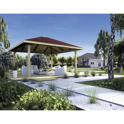 Die WEKA Sitzlaube »Paradies Größe 4« ist die ideale Wahl für alle, die ihren Garten oder ihre Terrasse in eine Oase der Entspannung und Geselligkeit verwandeln möchten. Mit ihrer großzügigen quadratischen Grundfläche von 433 x 433 cm und dem eleganten Zeltdach bietet sie ausreichend Platz für Familie und Freunde, um geschützt vor Sonne und leichtem Regen gemeinsame Stunden zu genießen. Diese hochwertige Sitzlaube ist perfekt für Gartenbesitzer, die Wert auf langlebige Qualität, ansprechendes Design und Funktionalität legen.